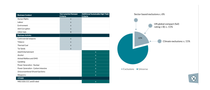 With effect from 1 July 2023, the sustainability characteristics of our unique and quality focused[1] Kempen (Lux) Euro High Yield Fund was considerably strengthened and aligned with the ESG approach of our Euro Sustainable Credit Strategy. The funds’ characteristics are now as follows: