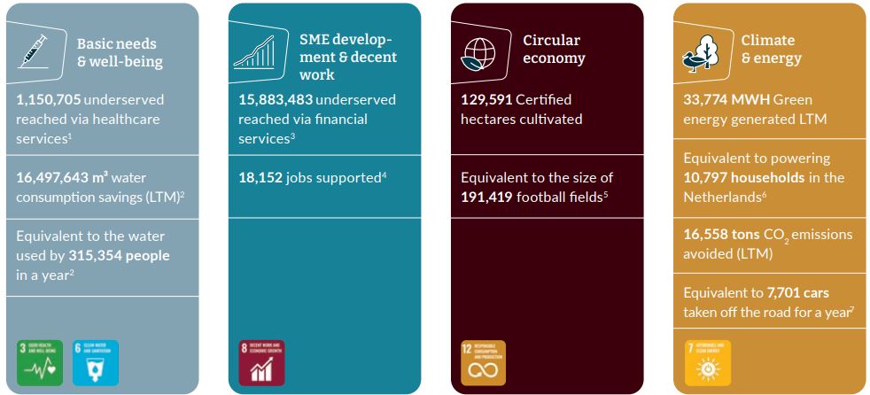 Within the theme of SME development and decent work, our investment partners made good progress by completing new or follow-on investments. Quona Capital, our investment partner focusing on early-stage fintech companies in underserved economies, called capital for their existing investment portfolio. The funds were used for follow on investments in ZestMoney, Sunday and Tarfin. ZestMoney is an Indian digital consumer lending brand for customers with no or limited credit history, the firm offers affordable cardless loans through online and offline partners. Sunday offers a one-stop insurance product to the underserved population in Thailand, which includes insurance for healthcare, mobile gadgets, motor vehicles or travel insurance. Tarfin is aimed at the agricultural value chain in Turkey and Romania by providing farmers with agricultural-input financing, inventory financing and point-of sale and crop financing during the harvest period. LeapFrog called capital to finance their investments in Sun King, a leading supplier and financier of solar home systems across Africa and Asia. The company distributes and finances affordable solar devices ranging from lanterns to larger conventional solar systems. The products of Sung King are distributed through wholesale partners or directly through a direct-to-consumer pay-as-you-go distribution network with 20,000 agents and 260 branches in eight African markets. Although this company has a clear link with the Climate and Energy theme, it also contributes to SME development as it enables small business to save costs on energy usage by installing energy-generating solar systems.