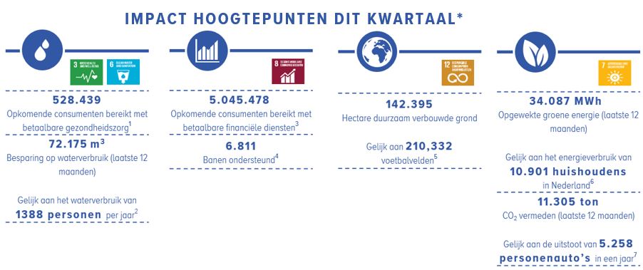 Onderstaand overzicht geeft per impact-thema een korte samenvatting van de belangrijkste ontwikkelingen in de portefeuille gedurende het kwartaal.